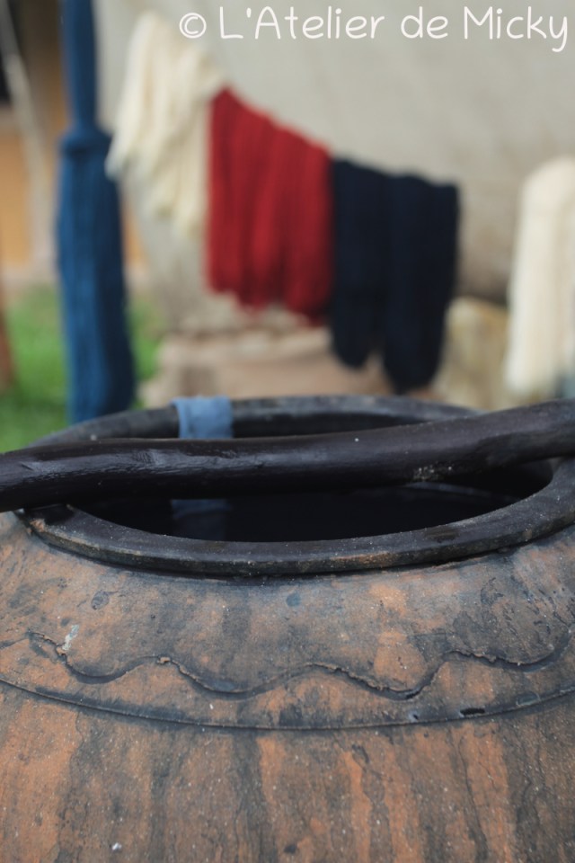 I had forgotten to bring my second pair of leather shoes… Between the rain-soaked soil and the splashes from dyeing and rinsing, my feet experienced some serious maceration in wet shoes that never dried. Add to that the smell of dyestuff, fermentation vat and wood smoke… My job is far from being glamorous!