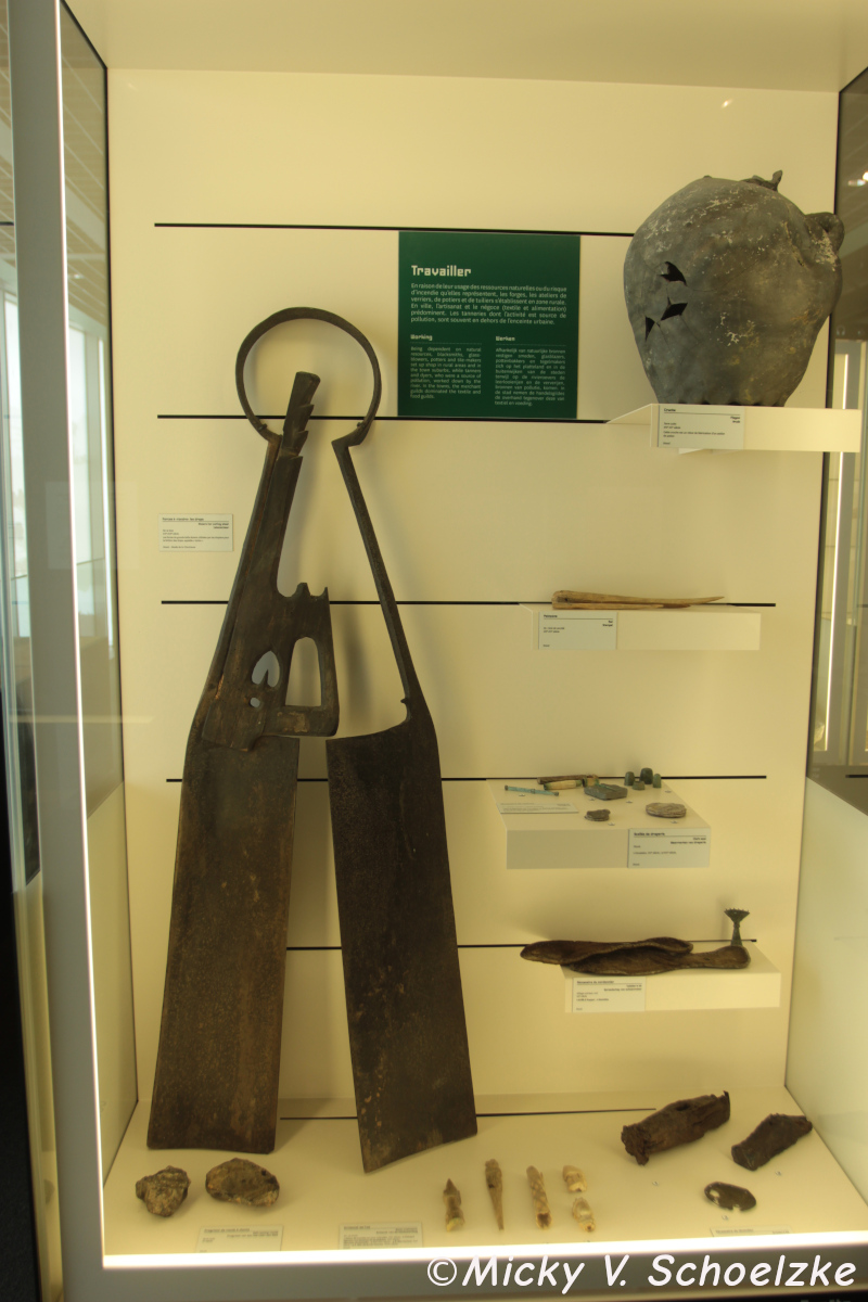 I was able to visit the museum only hastily on one of my midday breaks, but I just have to show you this picture of these impressive scissors from the XVI-XVIIth century, used to « shear » wool fabrics. Impressive piece of equipment!