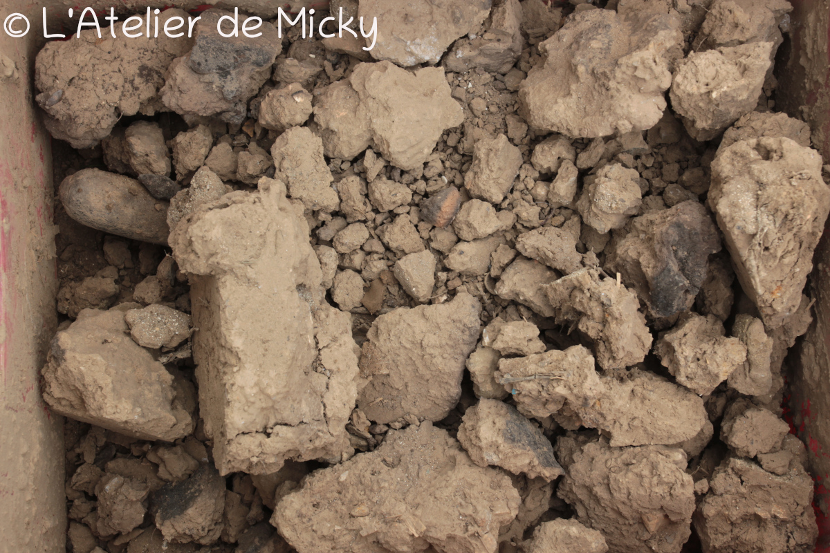 Before starting, I build a clay fireplace that allows me to concentrate the heat towards the cauldron even if there is wind. I carry my clay crate with me, reusing it at each event.