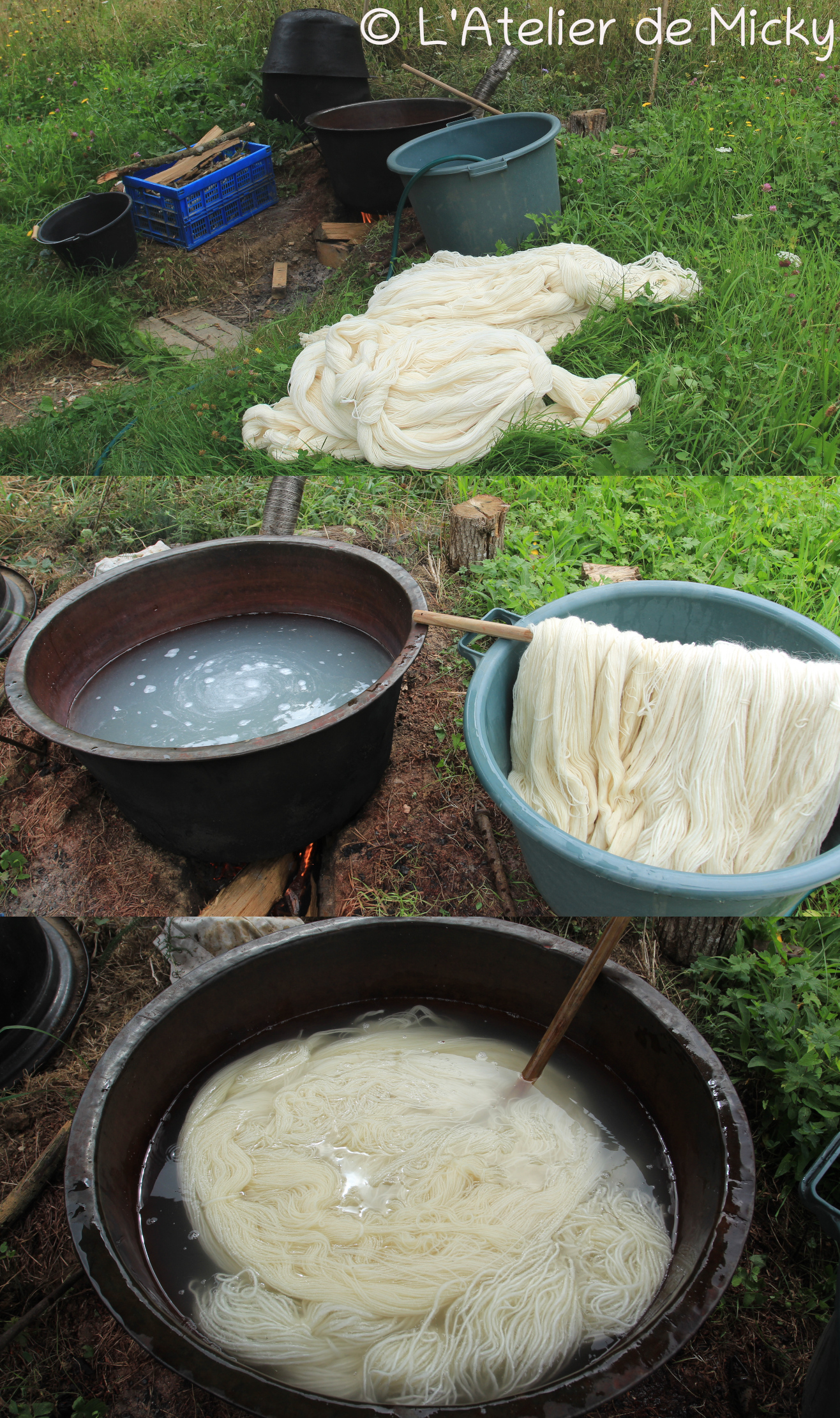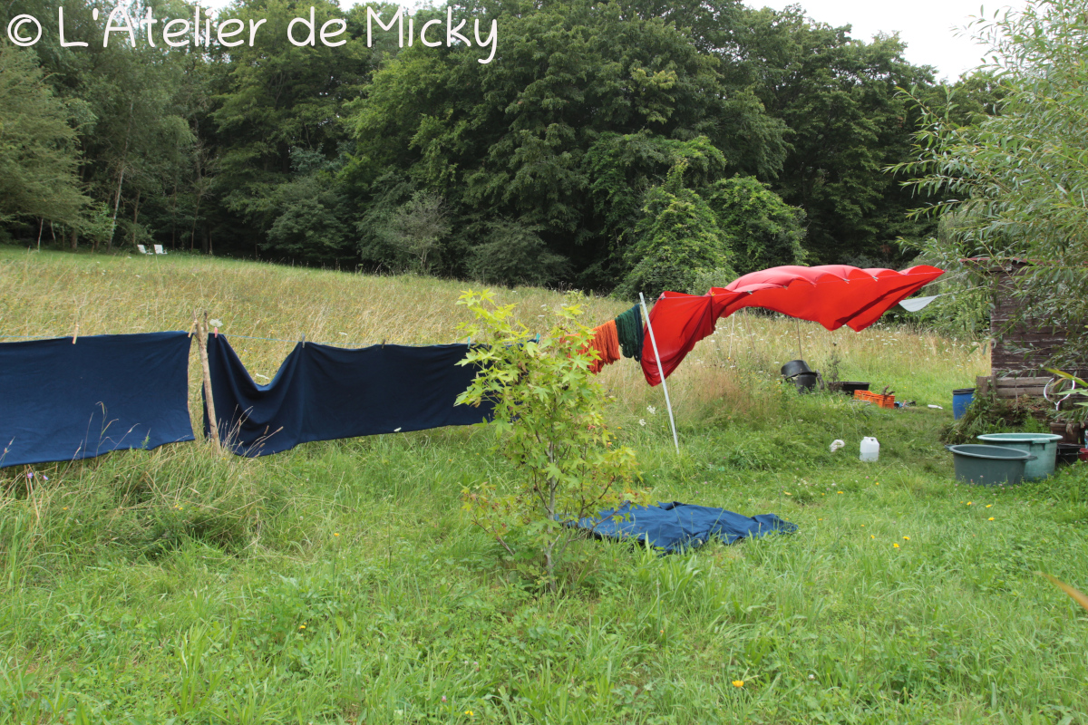 Beaucoup de mordançages sont finis ou à faire, sur écheveaux et tissus de laine.