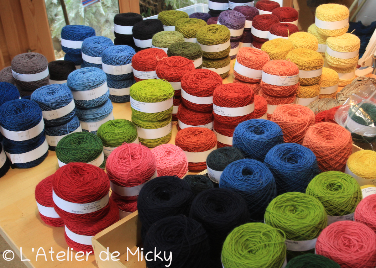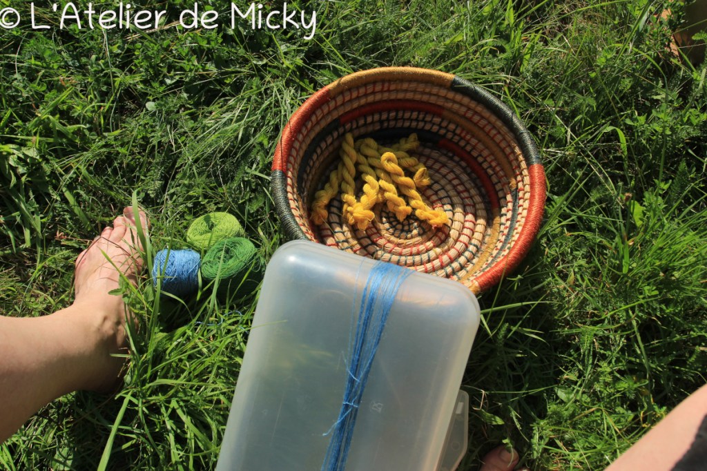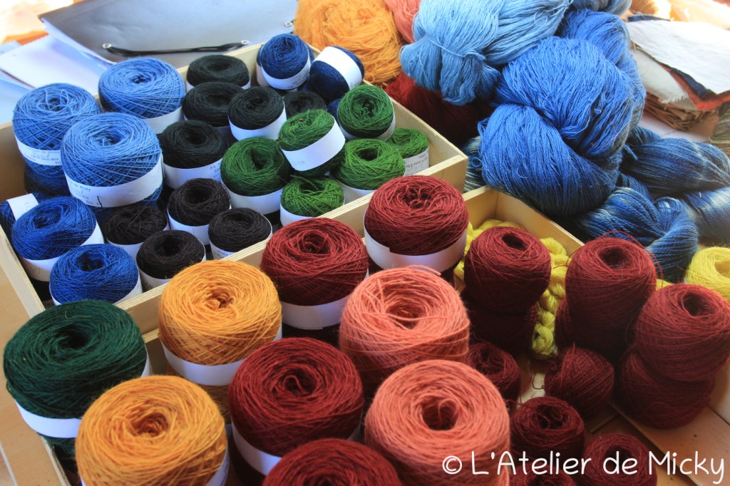 En démonstration ou chez moi, j’ai teinté pas mal de fils de chanvre et de lin également.