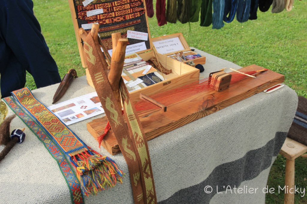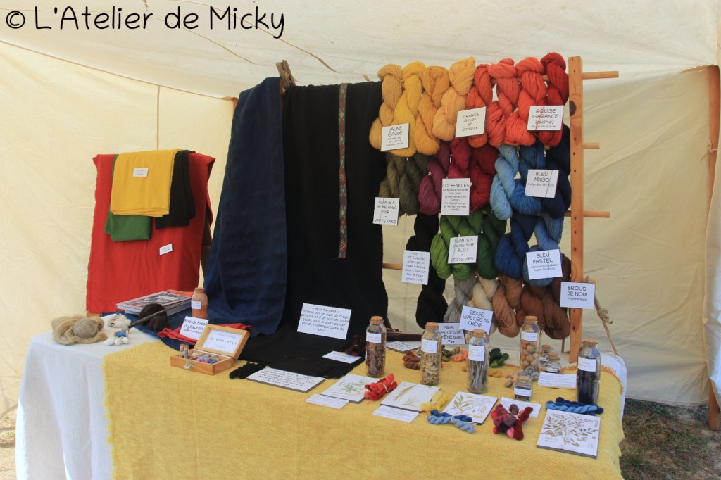Je m’y suis rendue avec la ferme intention de profiter du site et des amis! Vu que nous recevions du public les après-midi, j’ai tout de même emmené des petites démonstrations, mais en laissant mes chaudrons à la maison! J’avais seulement emmené des tissages et un peu de filage…