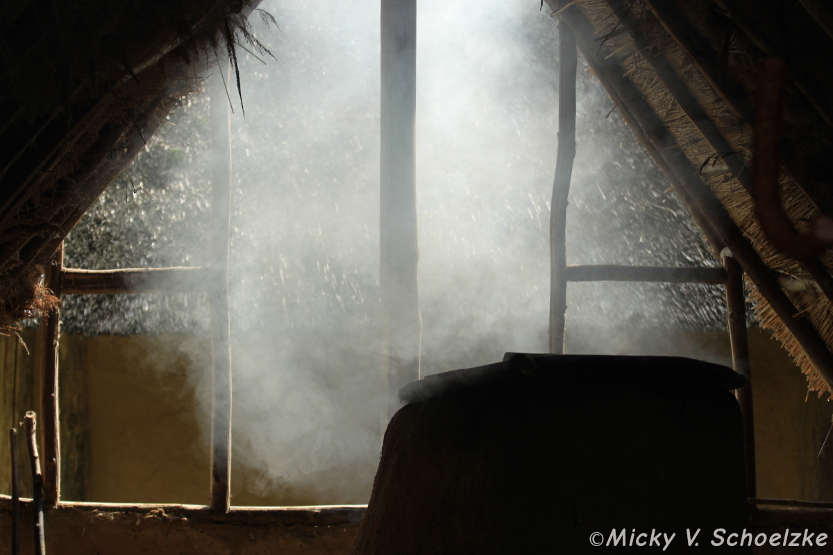 In the copper cauldron, I dyed some wool skeins with madder roots.
