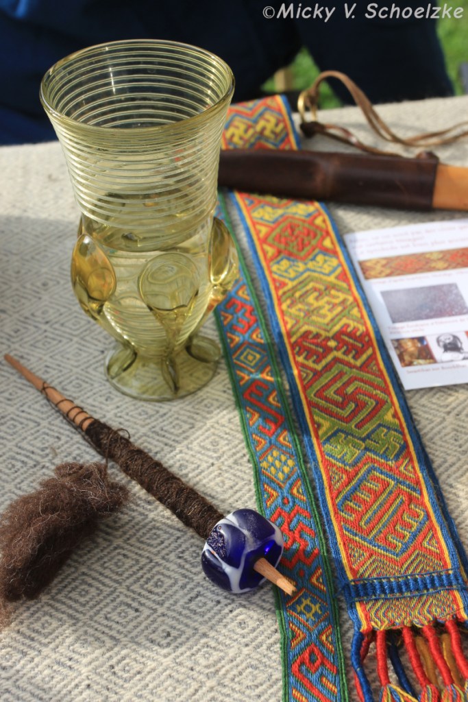 I went there with the intention to make the most of it, enjoying the site and seeing friends again! We were open to the public in the afternoons, so I took some tablet weaving and some spinning with me…