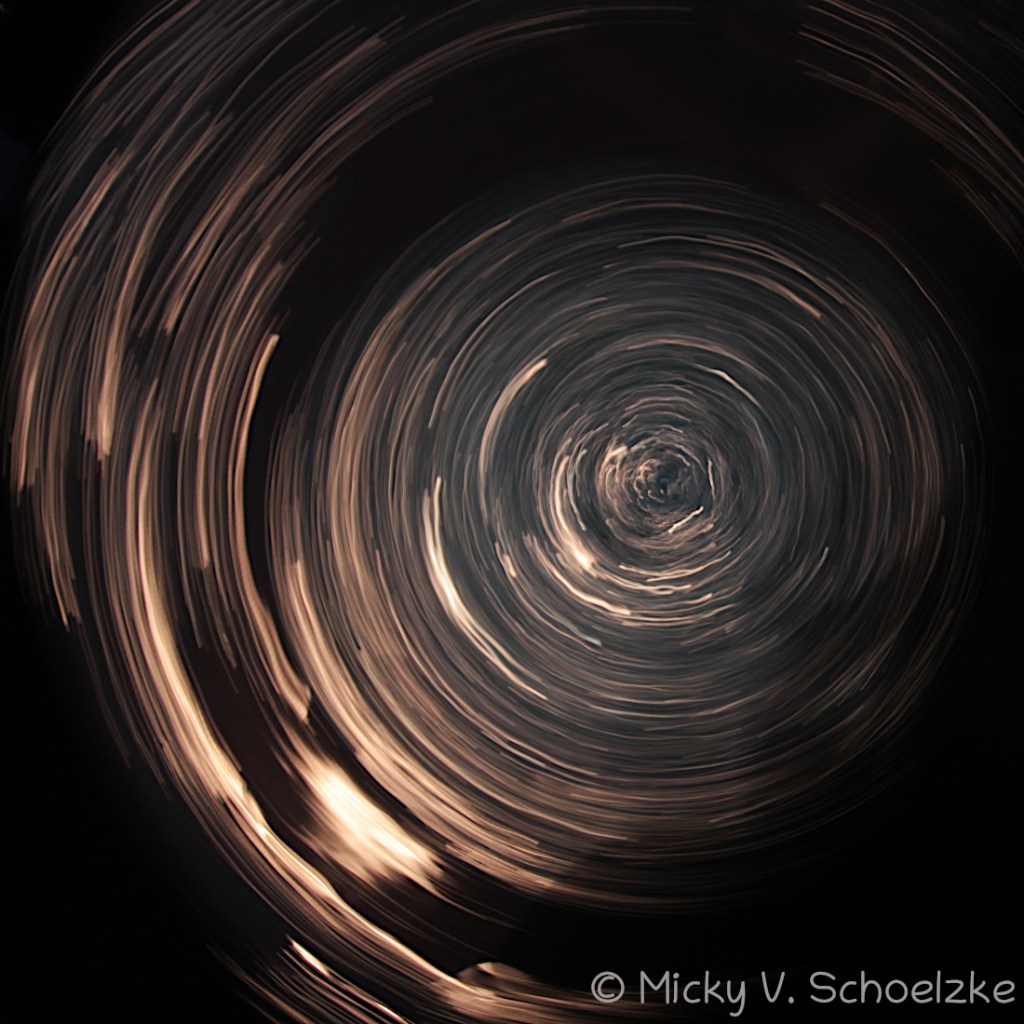 Mais j’ai de la chance: je peux conjurer un tourbillon cosmique si je veux! (Image de ma cuve d’indigo après son remuage quotidien en pose lente à 1/2 seconde).