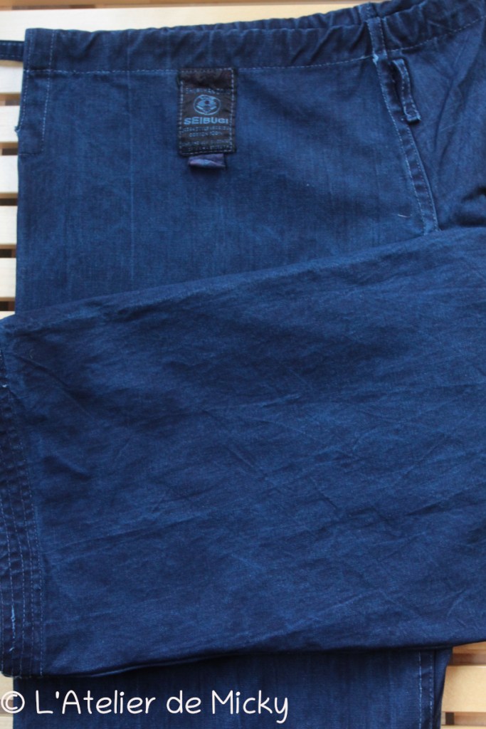 Winter also being the time where I work for myself a bit more, I dyed a pair of yellowing kimono pants that I found sadly sitting and in the back of a closet. Here it is nicely transformed! The cotton being very thick, it required 12 longer dips and longer oxidation times between dips.