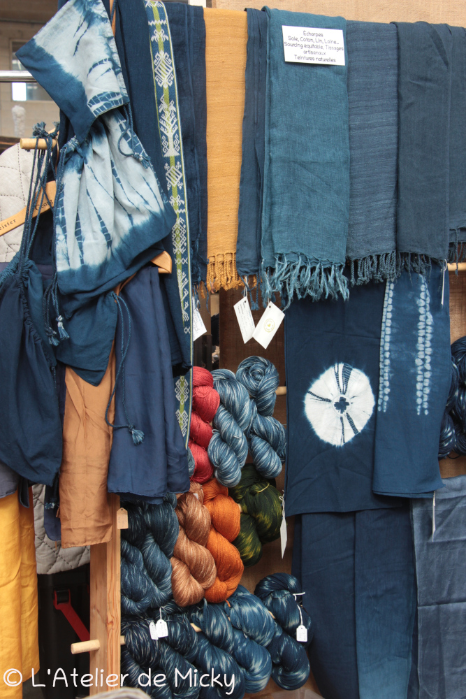 Vu que le marché a été plutôt calme, j’ai pu cette fois faire quelques emplettes, principalement pour compléter mes animations… Il me manquait quelques objets en bois que j’ai acheté chez mes amis de « De tours en détours ». Également un gobelet XIIIème siècle chez « La Poterie des Grands Bois » (parce que je fais parfois des animations teinture sur le thème du Moyen-Age avec un équipement et costume plutôt XIIIème). Et j’ai craqué pour une pochette brodée chez mon amie Isabelle Jaulme (brodée avec des soies que j’ai teintées à l’atelier).