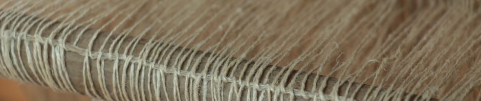 The loom is outside under a shed, a little exposed to the elements during the season, so I chose linen as a thread, it’s more to have a small display in place than anything else.