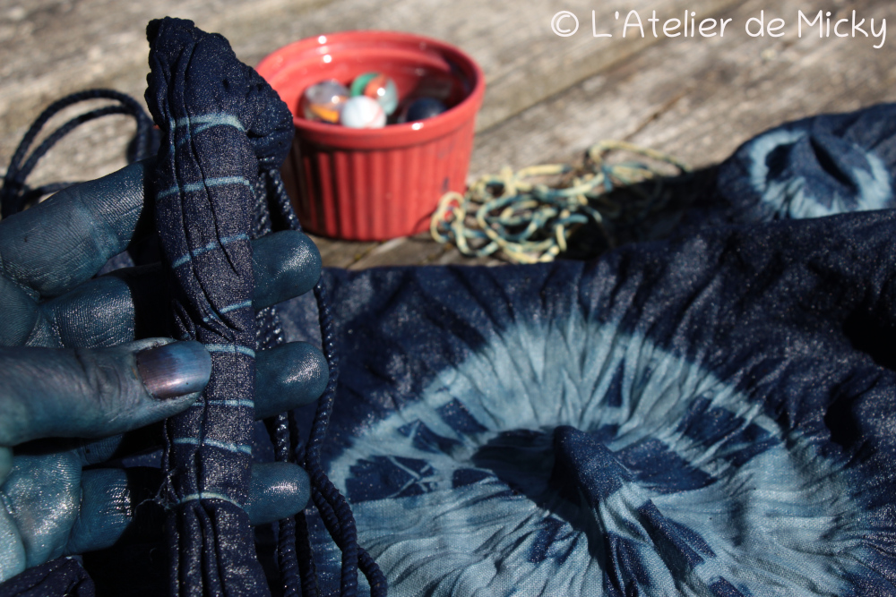 A bit of tie and dye on recycled cotton pouches, a new addition to my shop. I love those bags, I kept some for myself to make gifts…