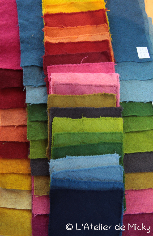 Il y avait également des jaunes de différentes nuances avec de la gaude, du kaki (gaude + fer) et des variations de garance et de cochenille!