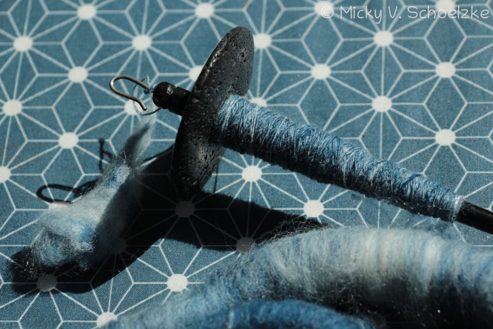 Of course, I just had to try spinning that right away, an excellent occupation while waiting for the dye pots to heat up!
