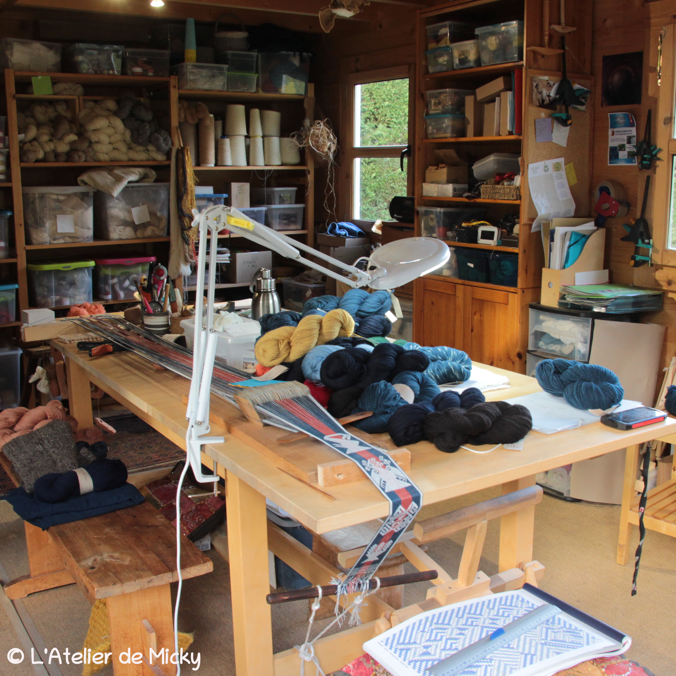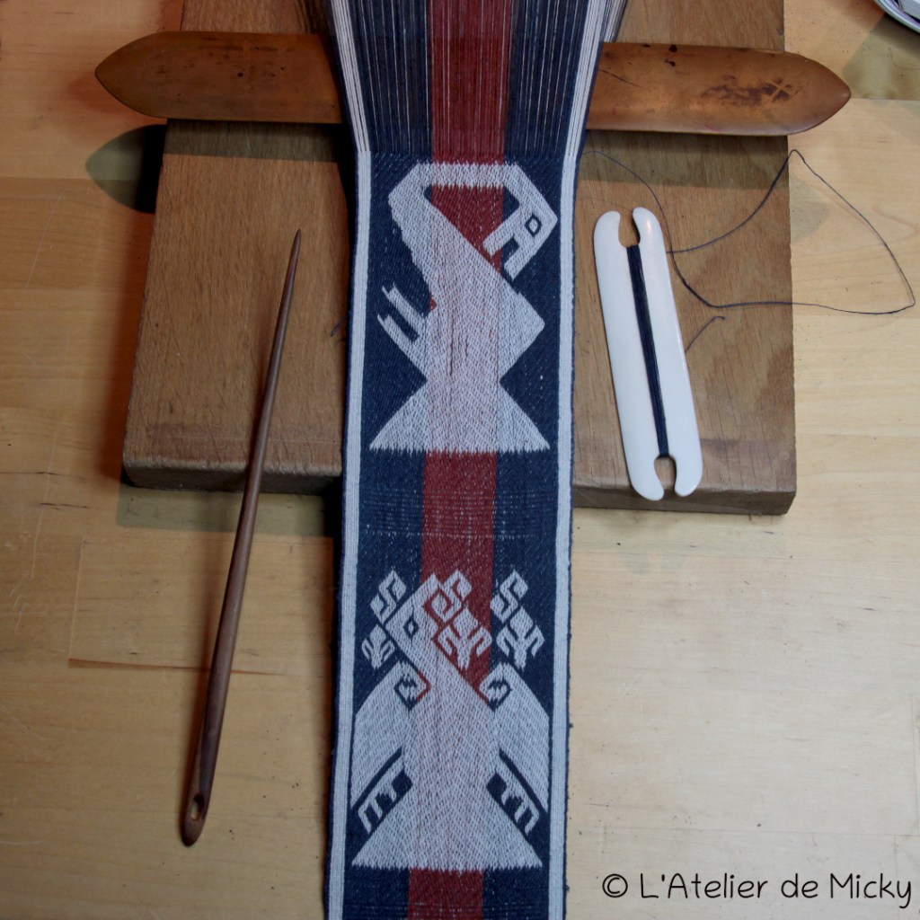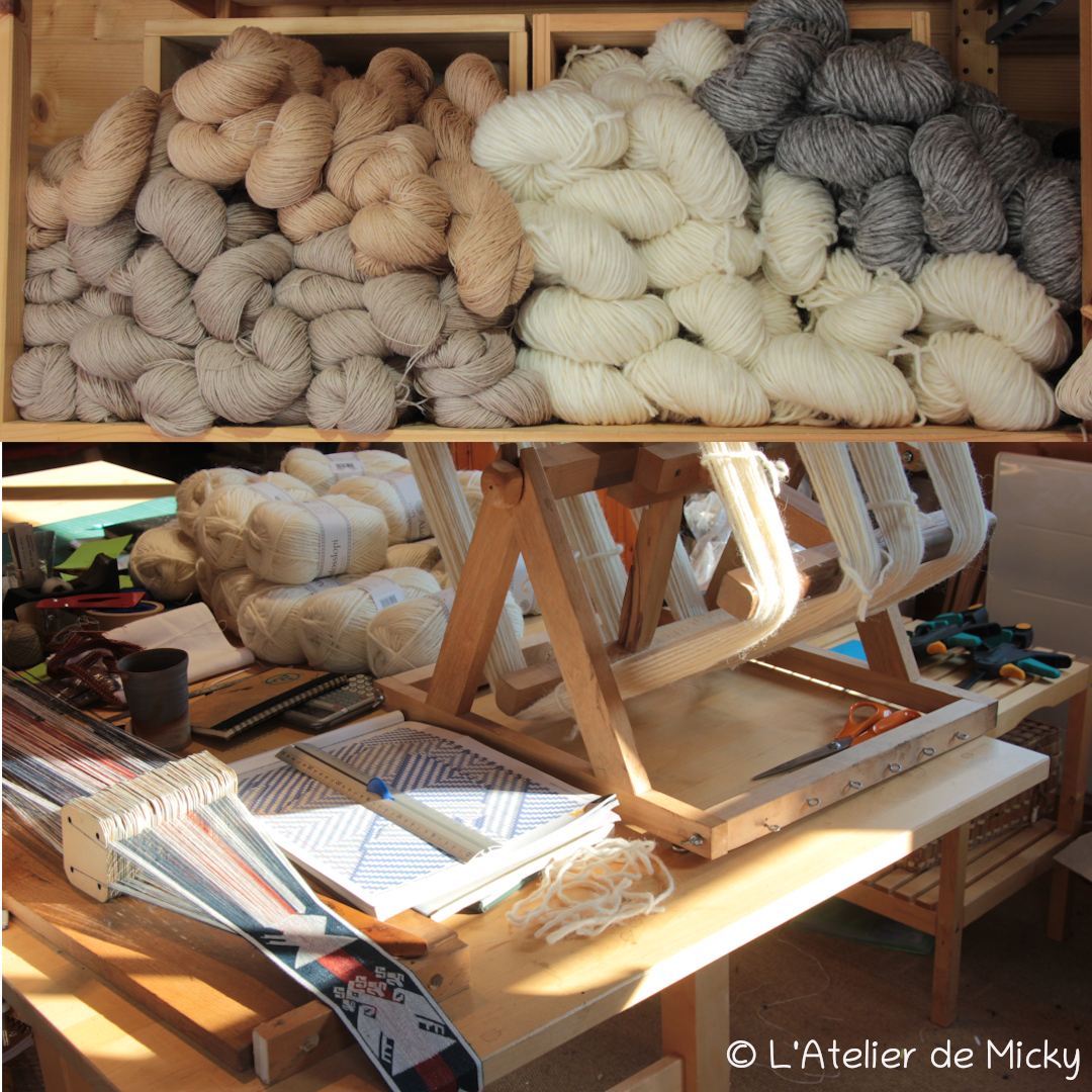 You will notice that my winter recreation is still on my table… I haven’t found the heart to put away this beautiful weaving that I will have to leave aside for a while due to lack of time. I sit on it from time to time, for a little hour, it is important to have breaks! I removed it the other day to make space for a tablet weaving workshop, but finally decided to put it back… You definitely need some weaving breaks when you are running in your wheel!