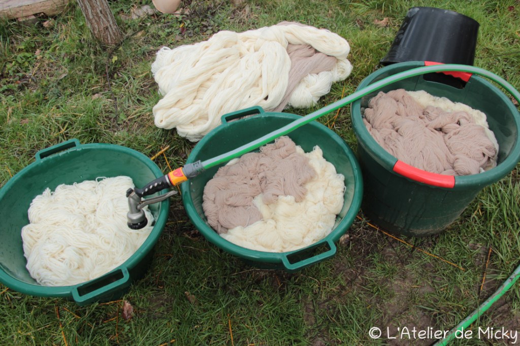 C’est reparti pour la production en teinture! Je me sens toujours comme un pauvre hamster dans sa roue pendant ces périodes-là qui demandent beaucoup d’organisation, des dizaines de listes et de notes pour ne rien oublier et une énergie qu’on a parfois du mal à rassembler en sortie d’hiver… Mais mes stocks sont presque à sec, grâce à la fidélité et à l’enthousiasme de mes chers clients que je remercie de m’avoir quelque peu dévalisée entre novembre et mars! Je suis donc très en retard dans mes teintures et réalisation de commandes cette année.