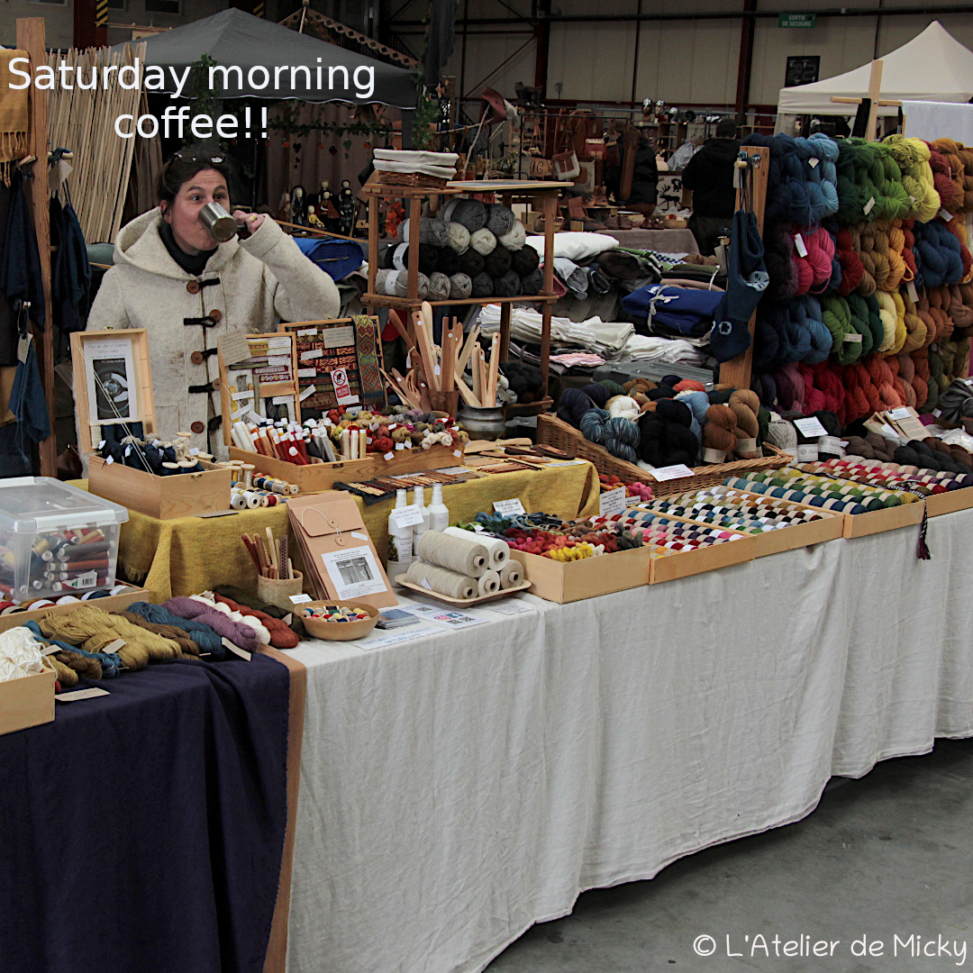 The Compiègne market in April was quiet and I didn’t manage to dye everything I had planned, but my stall was pretty full anyway! It’s always a great occasion to catch up with friends and colleagues as well as doing some shopping for the upcoming demonstration season.