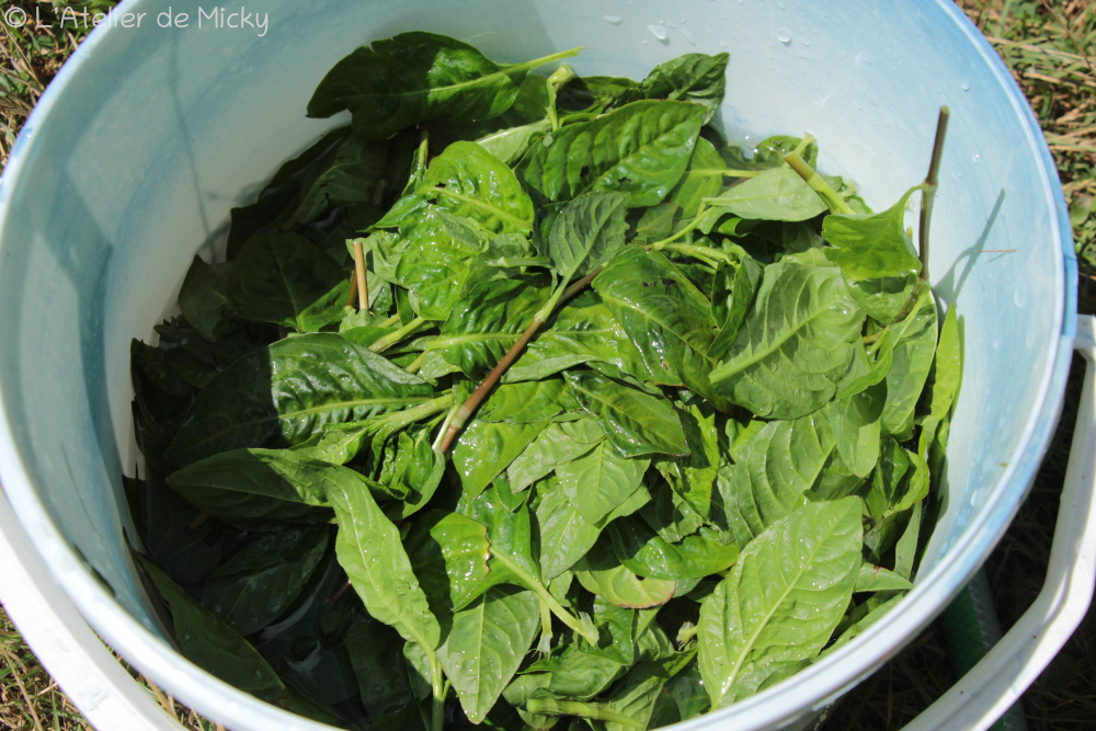 Les rameaux sont récoltés et lavés. Il est utile de rappeler que les plantes à indigo ont besoin de soleil pour produire davantage de pigment, c’est un peu leur protection UV, donc la récolte est toujours meilleure après un épisode ensoleillé.