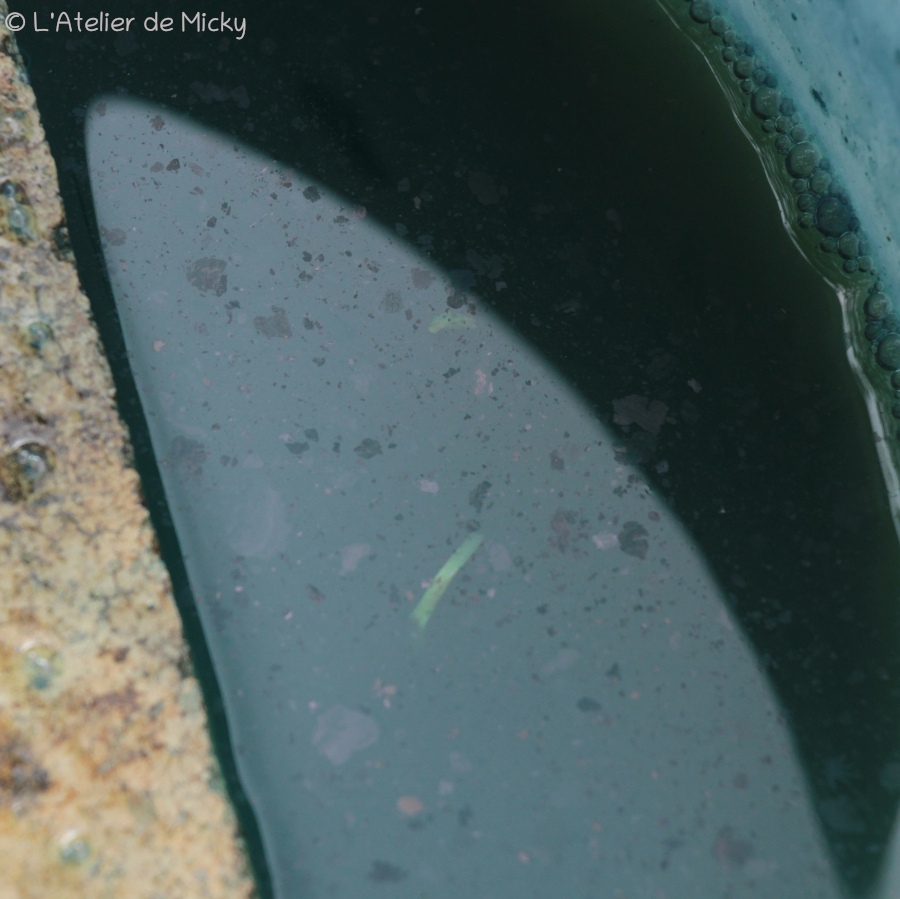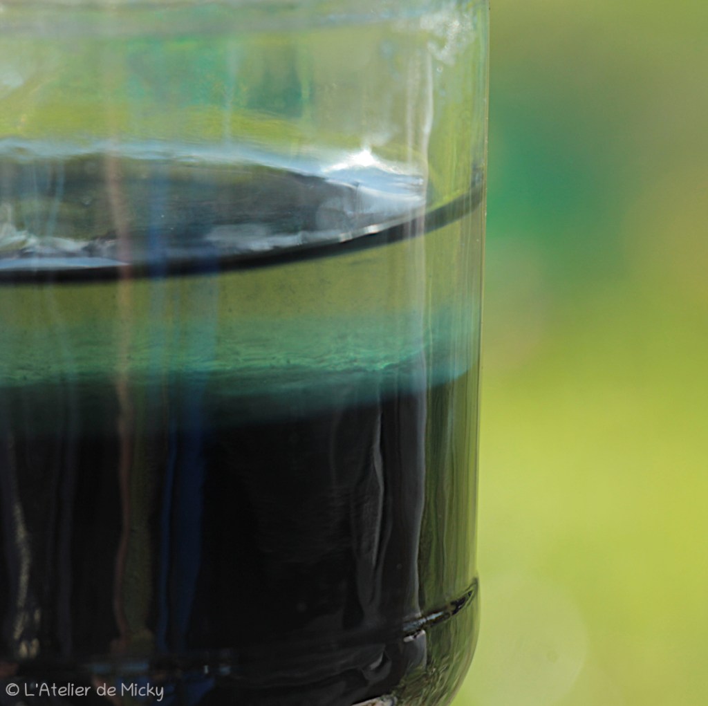 Bon, moi j’ai un nez qui a l’habitude de tout flairer et analyser, je n’ai pas trouvé très difficile de déterminer le bon moment… Une odeur douceâtre de fruits beaucoup trop mûrs, un liquide qui devient vert-bleu, des bulles, des irisations et des feuilles qui sont passées d’un beau vert à un brun flétri.