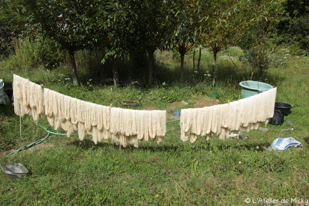 Travailler avec ce lin à dentelle très fin n’est pas simple et demande pas mal de manipulations et d’étapes avant d’aboutir à ces jolies échevettes! Presque aussi délicat que la soie filament.