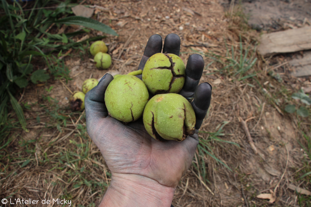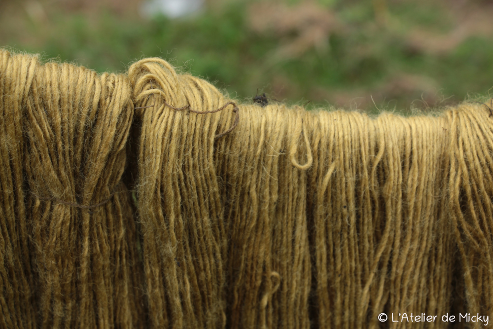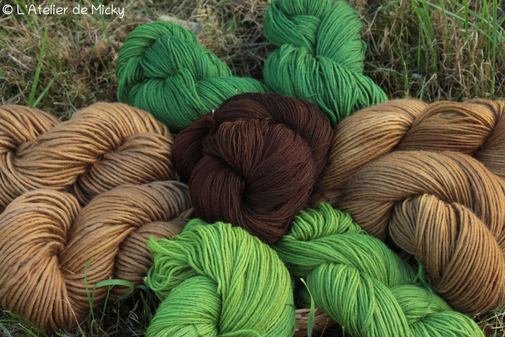 Mon regret sera cette année de ne pas avoir eu le temps d’aller davantage chasser les coques de noix vertes, je n’en ai pas énormément, assez pour quelques beaux écheveaux cependant… Pour ceux et celles qui sont nouveaux sur le blog, vous pouvez consulter cet article pour des infos sur ma méthode de teinture aux noix.