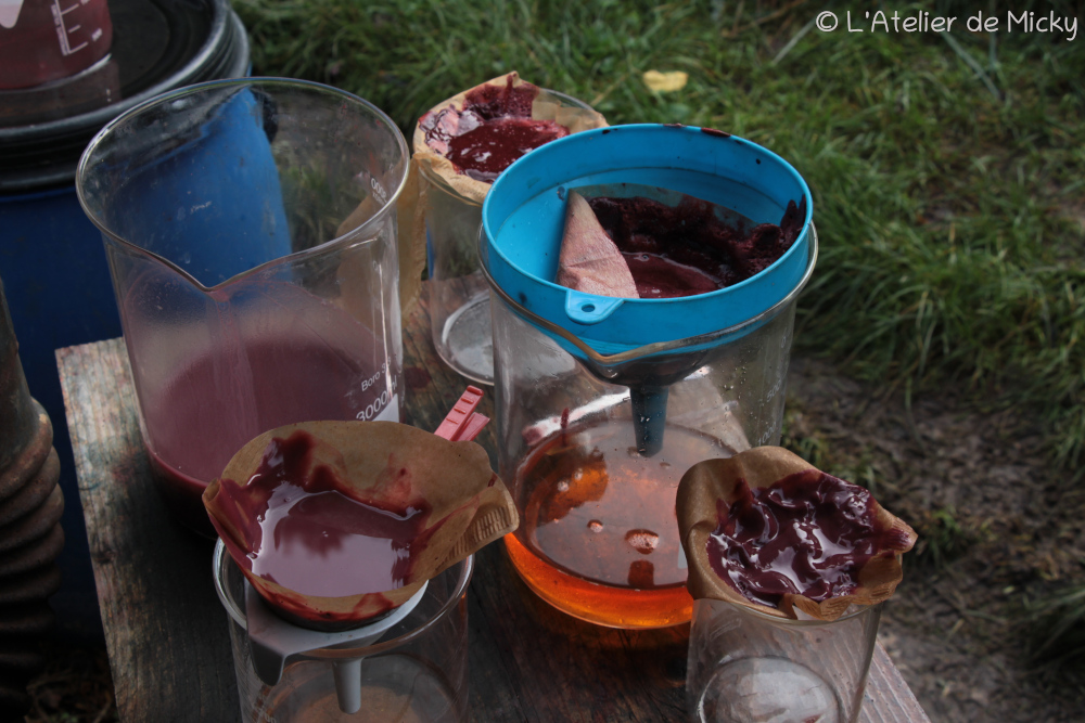 Il faut s’armer de patience pour la filtration, cela peut prendre beaucoup de temps mais on peut ensuite faire sécher le pigment ainsi obtenu.