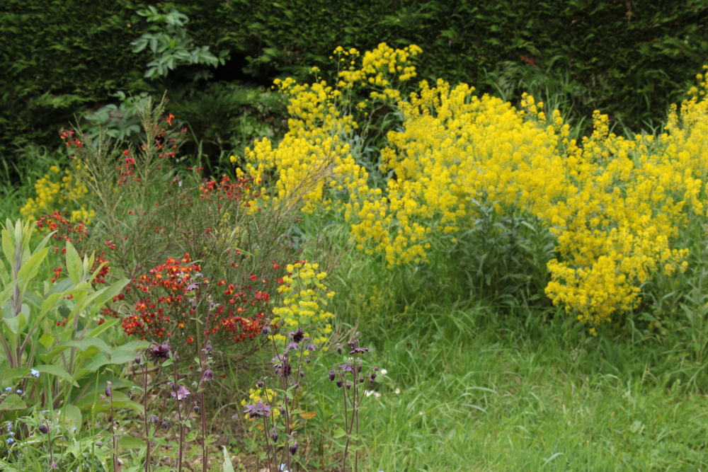 Côté jardin d’agrément, c’est l’époque des floraisons spectaculaires des sceaux de Salomon sauvages installés depuis des décennies et des fleurs cultivées comme les ancolies, rhododendrons et autres.