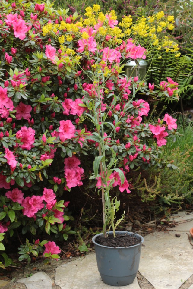 Il y en a à qui j’ai demandé un gros sacrifice: celui d’être en pot! Mais c’est pour la bonne cause, celle de servir de « support pédagogique » pour mes animations de teinture, pour montrer au public à quoi ça ressemble.