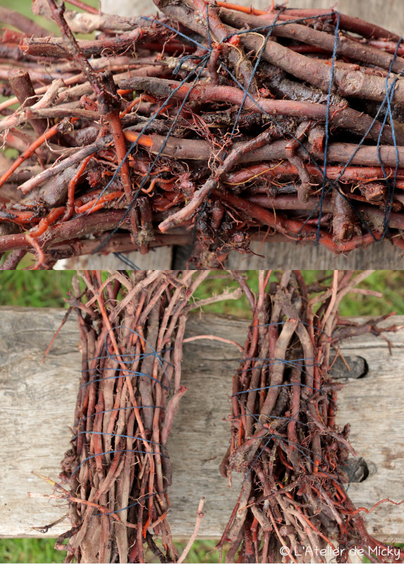 Ensuite, les racines fraîches ont été mises en fagots. J’en ai gardé pour la faire sécher à l’air, en prenant soin d’avoir des échantillons à peu près similaires en terme de taille/âge des rhizomes. J’étais tellement concentrée et excitée que j’ai oublié une chose importante: les peser avant et après!