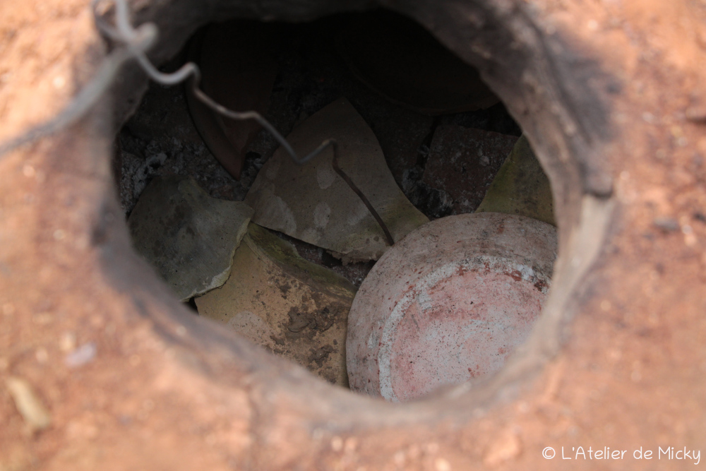 J’avais disposé des briques et des tessons de poterie au fond du four.