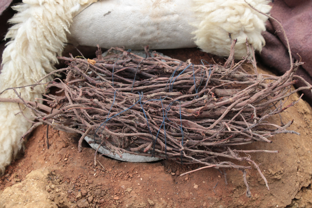 Le four a été couvert avec des peaux de mouton et des couvertures en laine laissées en place pour la nuit.