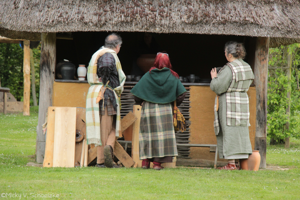 While I was digging in the earth and preparing my stuff, the rest of the park was populated by some Celts, with two Gaulish reenactment groups as well as a talented potter, Fiona from the Atelier Figulina. I didn’t have time to take many photos…