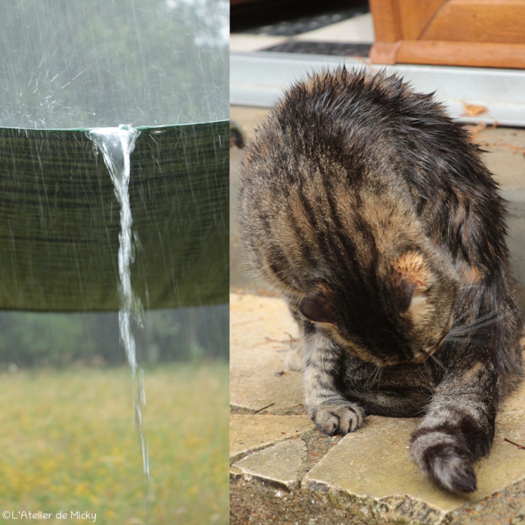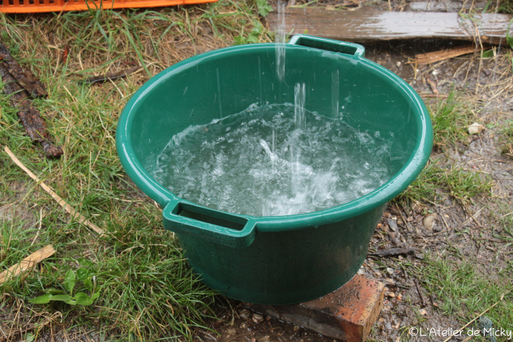 L’été ne s’est pas vraiment installé chez moi et j’ai encore eu beaucoup de pluie, parfait pour récupérer des dizaines de litres pour mes bains de cochenille et mes cuves d’indigo en fermentation!