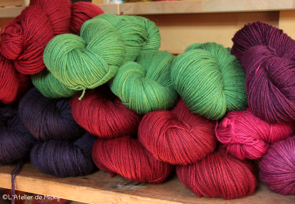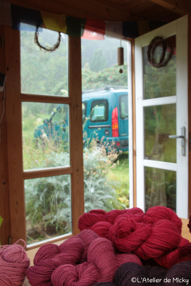 Quand le temps est vraiment trop mauvais, il y a toujours du travail à faire au sec à l’atelier… Mise en écheveaux, etiquettes, pelotes…