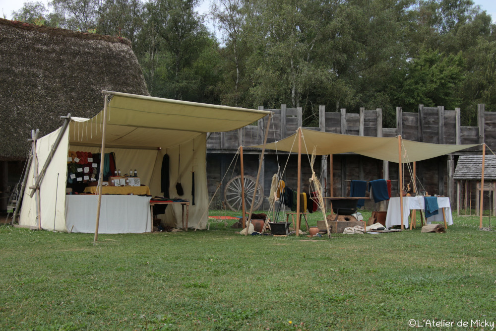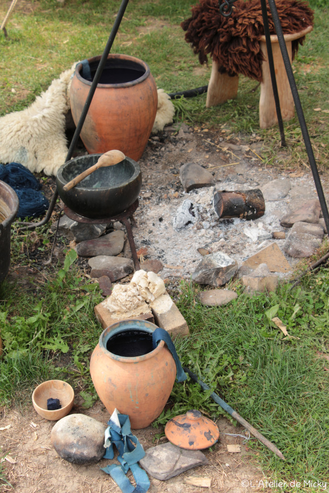 Like last year, I was in the company of Charline (Le Fuseau du Chat Moire) and Isabelle. Our little textile team is working well and giving visitors to the museum a good idea of historical textile work, from spinning and weaving to embroidery and dyeing.