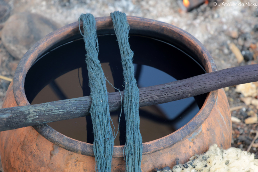 Bon, ce n’est pas un drame, je re-teinterai de jolis tissus pour le musée. Si mon égo et ma conscience professionnelle en prennent un coup lorsqu’il y a des ratés en démonstration, l’illusion d’une jolie couleur est présente tant que je ne les sors pas du bain de teinture! C’est fou comme un tissu mouillé peut avoir l’air chouette dans la teinture et se transformer en monstre dès qu’on l’essore… Ce qui est rageant, ce que j’ai gâché de la bonne plante tinctoriale pour pas grand chose, mais ce sont des choses qui arrivent.