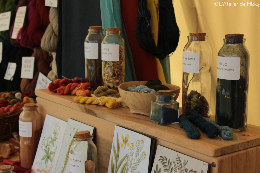 Comme l’année dernière, j’étais en compagnie de Charline (Le Fuseau du Chat Moire) et Isabelle. Notre petite équipe textile fonctionne bien et offre aux visiteurs du musée une bonne idée du travail textile historique, du filage et tissage à la broderie en passant par les teintures.