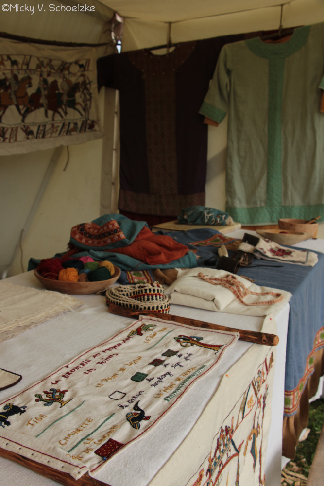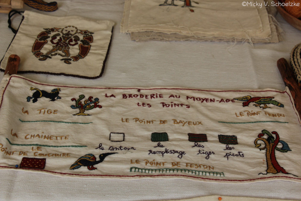 Like last year, I was in the company of Charline (Le Fuseau du Chat Moire) and Isabelle. Our little textile team is working well and giving visitors to the museum a good idea of historical textile work, from spinning and weaving to embroidery and dyeing.