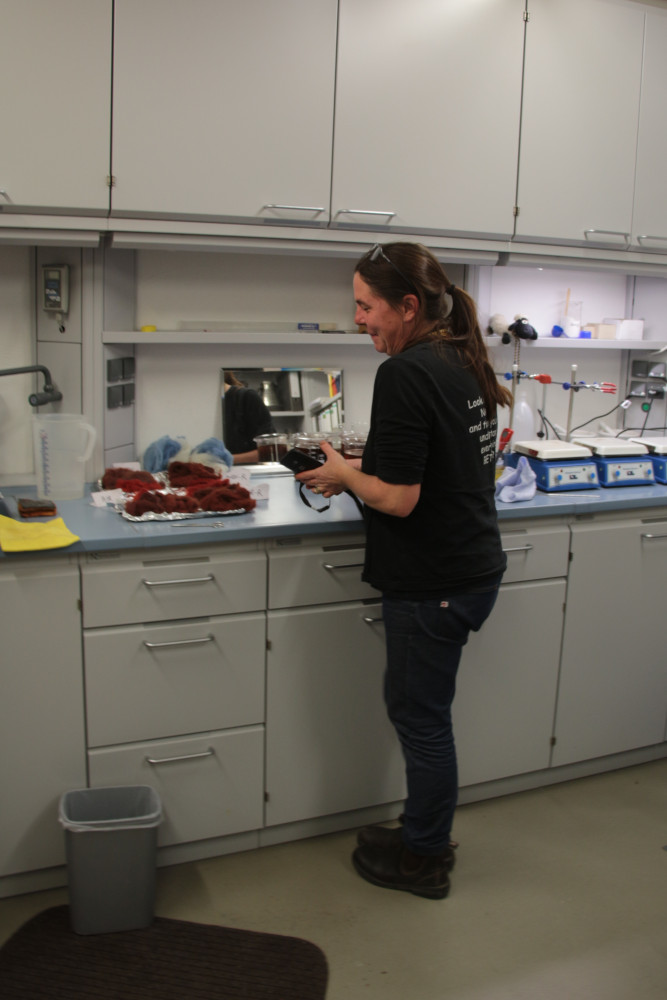 Voici quelques images du Forum. Cette année, j’avais prévu quelques expériences au laboratoire mais pas au même niveau que l’année dernière, où j’y avais passé beaucoup d’heures. J’ai tellement teinté en octobre que j’avais vraiment besoin de penser à autre chose! Le thème de cette année était « Edges and embroidery », les bordures/lisières et la broderie, malheureusement nous n’avons pas eu de propositions d’interventions sur la broderie, dommage…