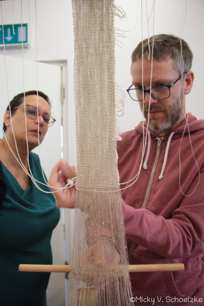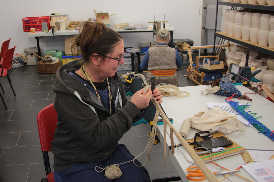 Sometimes, certain works travel through the years and take advantage of the forum to come out again, like here this warp-weighted weaving with errors which was already present at the 2021 forum. Thanks to many hours of perseverance and some advice per Zoom from other weavers, it’s now all beautiful! That’s what the forum is all about: bringing up problems and finding solutions.