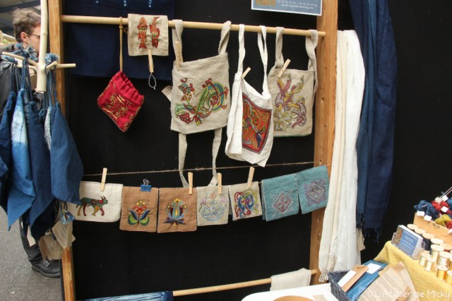 My working year has started with the medieval and fantasy fair Normannia in Rouen, at the beginning of February. I have to admit that it’s not my favorite fair: too soon to get out from hibernation, too many people, too much noise! l’m a bit of a badger… But I have got used to go there for some years and it’s always a good opportunity to see loyal customers and friends! I shared my stall with my embroiderer friend Isabelle.