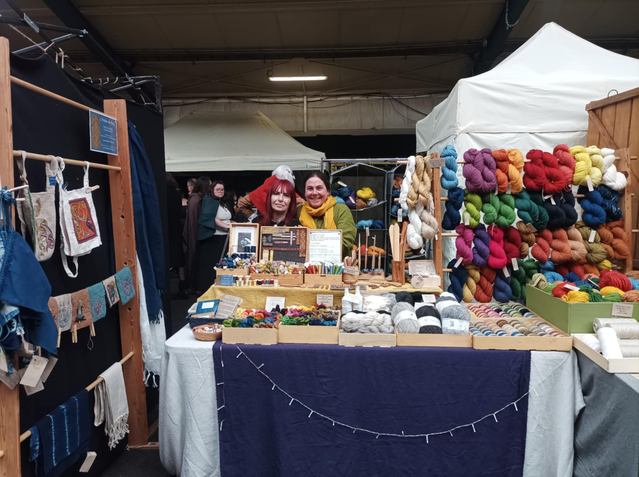 My working year has started with the medieval and fantasy fair Normannia in Rouen, at the beginning of February. I have to admit that it’s not my favorite fair: too soon to get out from hibernation, too many people, too much noise! l’m a bit of a badger… But I have got used to go there for some years and it’s always a good opportunity to see loyal customers and friends! I shared my stall with my embroiderer friend Isabelle.