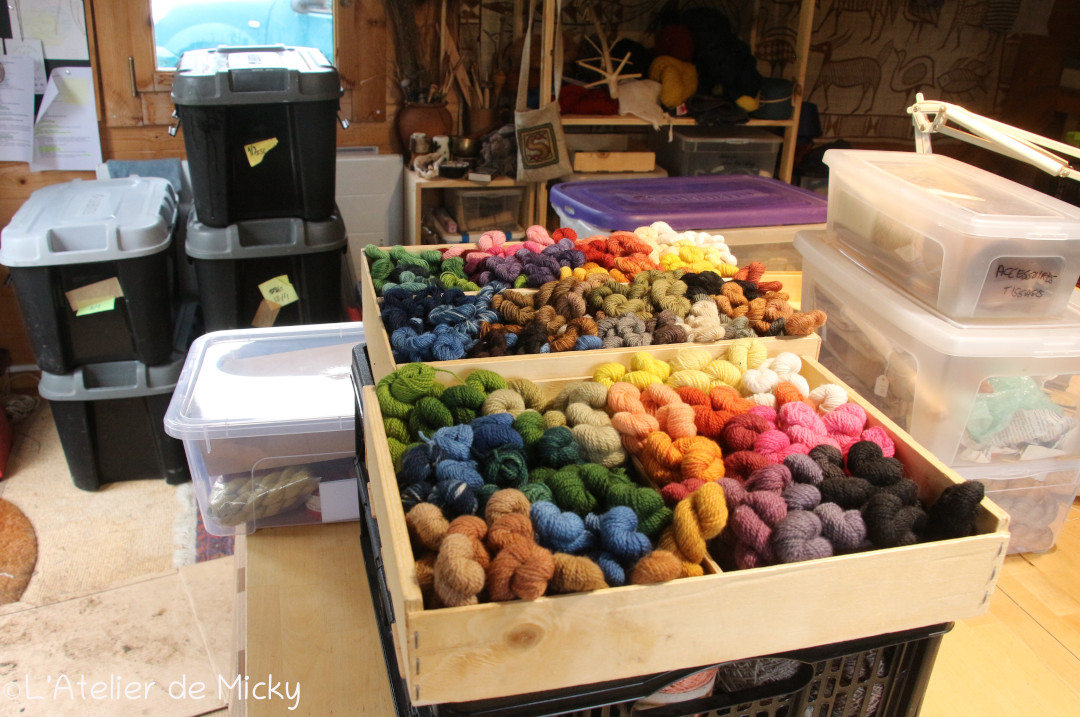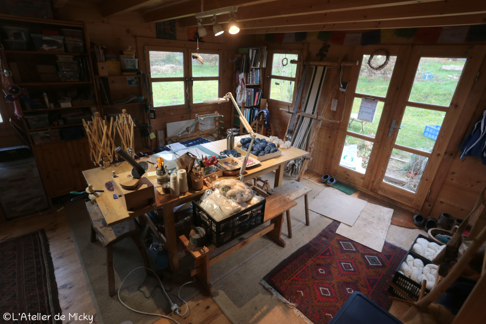 En ce début d’année, je finalise peu à peu l’installation de mon nouvel espace de teinture, à l’abri des aléas météorologiques, avec de l’électricité et bientôt de l’eau. C’est rustique, mais autrement plus confortable pour travailler quand il fait froid, humide ou venteux. J’ai encore pas mal de travail et des rangements à installer, mais ça avance. Un jour, je pourrais y recevoir des stagiaires en teinture!