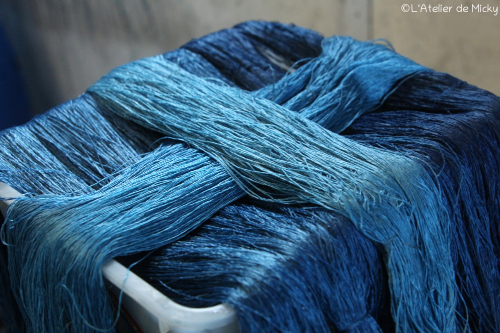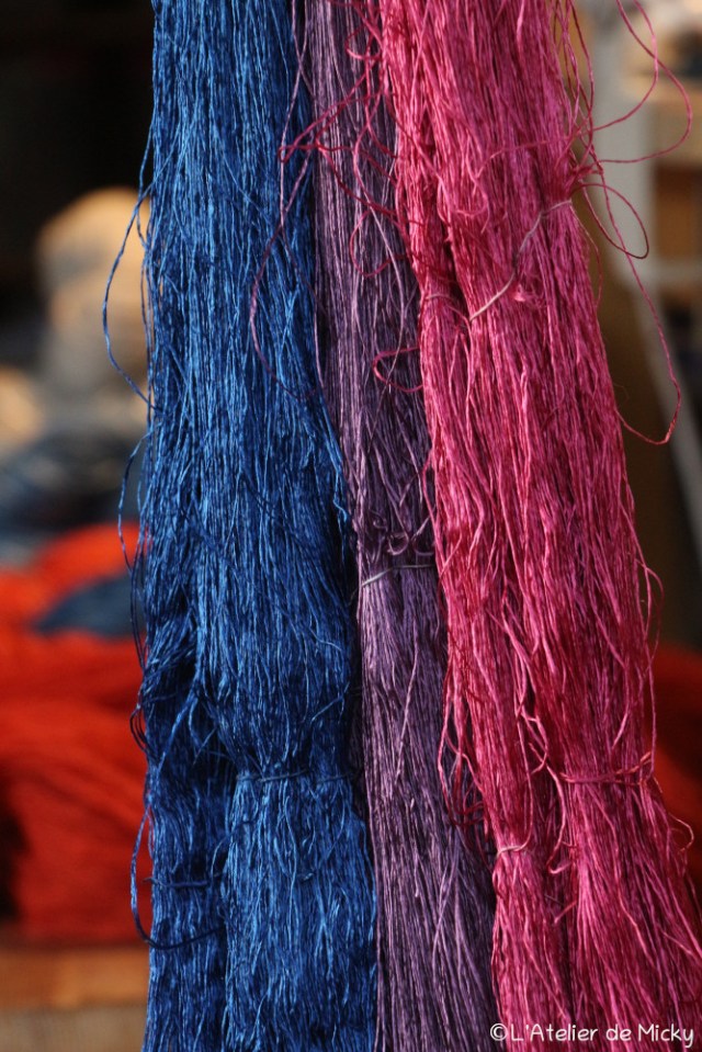 Dyeing and preparing this silk is a time-consuming activity, requiring concentration, precision and delicacy, so much so that I sometimes reach a beautiful state of ‘flow’. In positive psychology, flow is « a mental state reached by a person when they are completely immersed in an activity and are in a maximal state of concentration, full engagement and satisfaction in its accomplishment ».