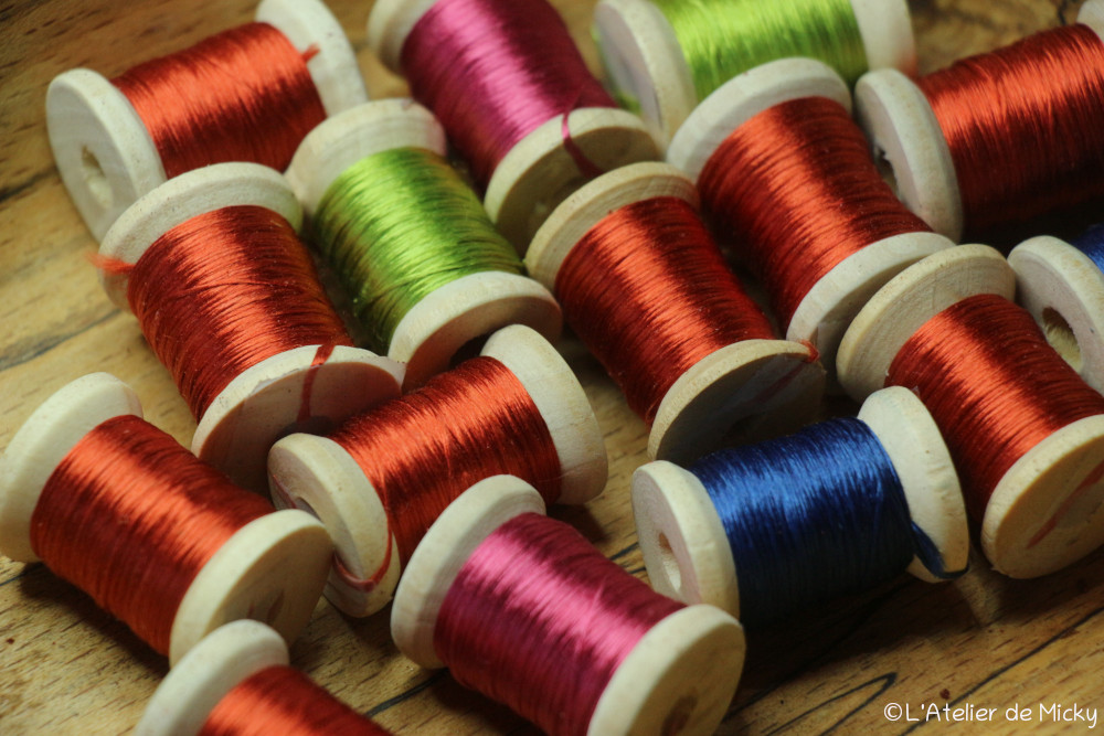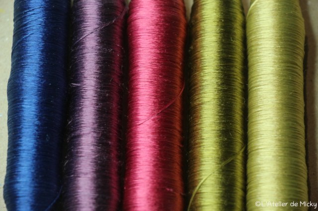 J’en ai teinté plus que ce qu’on m’a commandé, pour mon stock à vendre, que je dois encore mettre sur bobines de 25m.