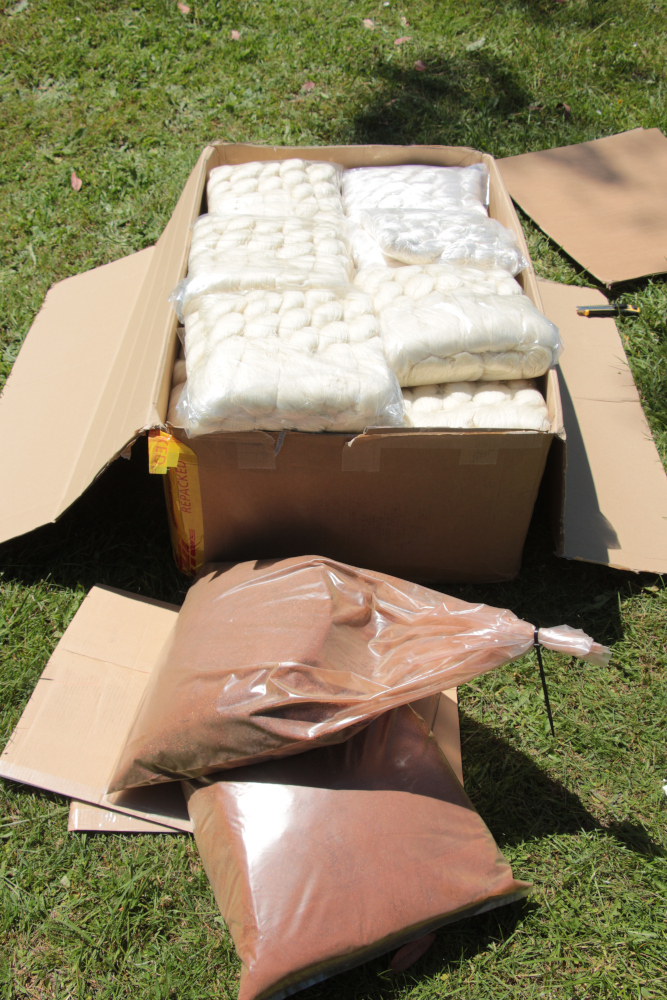 Vous l’aurez compris, je ne chôme pas! J’ai reçu la quasi-totalité de mes écheveaux à teindre et les matières tinctoriales dont je vais avoir besoin et le stock va être refait petit à petit.