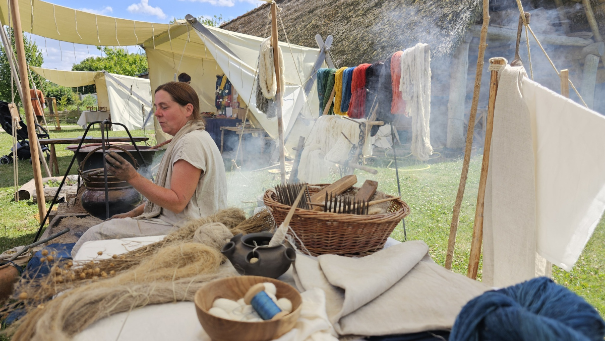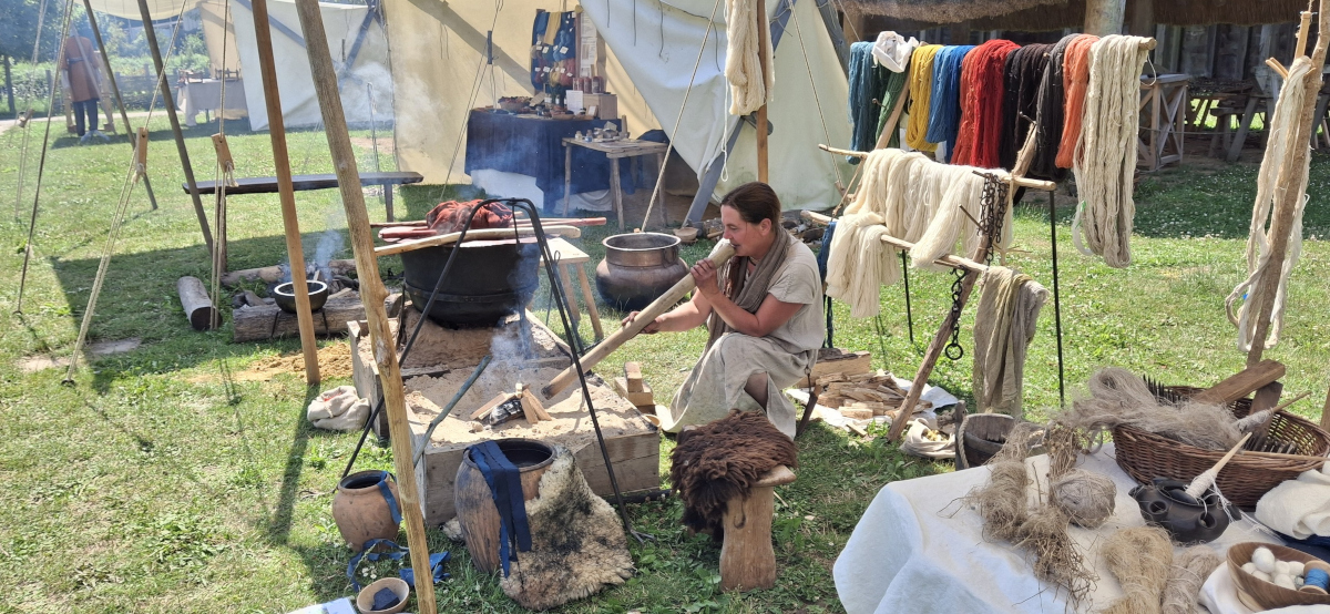 Cette année encore, le musée Arkéos de Douai m’a demandé de venir passer une semaine à teindre sur place au début du mois de juillet. C’est toujours une semaine intense et fatigante, mais il y a pire comme lieu de travail!