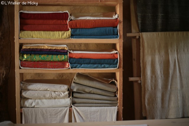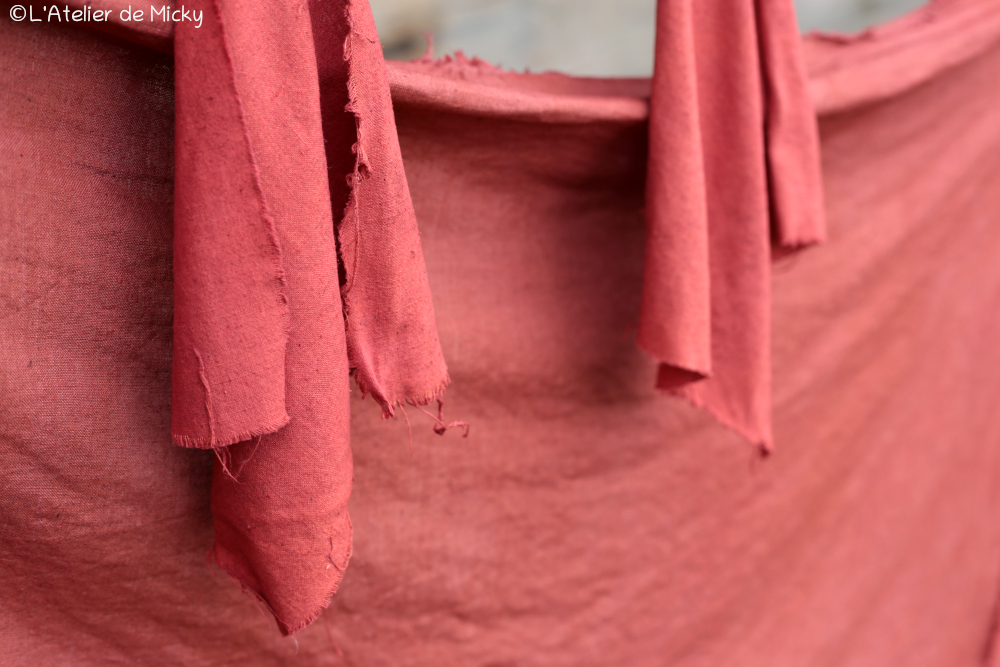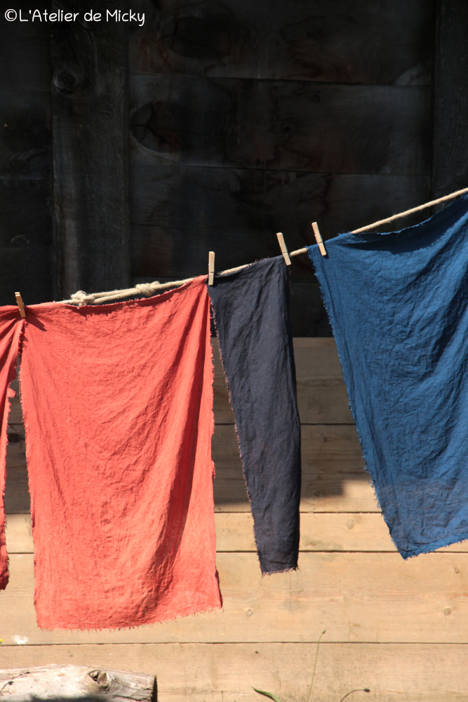 J’ai également fini de teindre des tissus prévus pour la présentation dans l’une des maison du site, avec la mise en scène d’une échoppe.