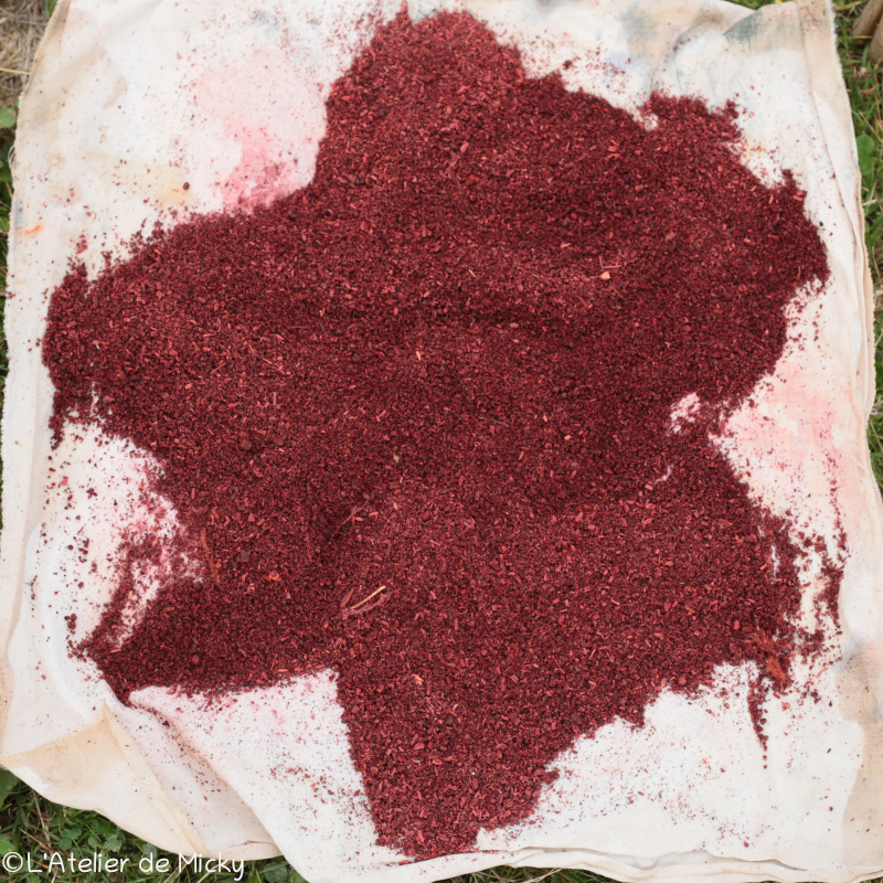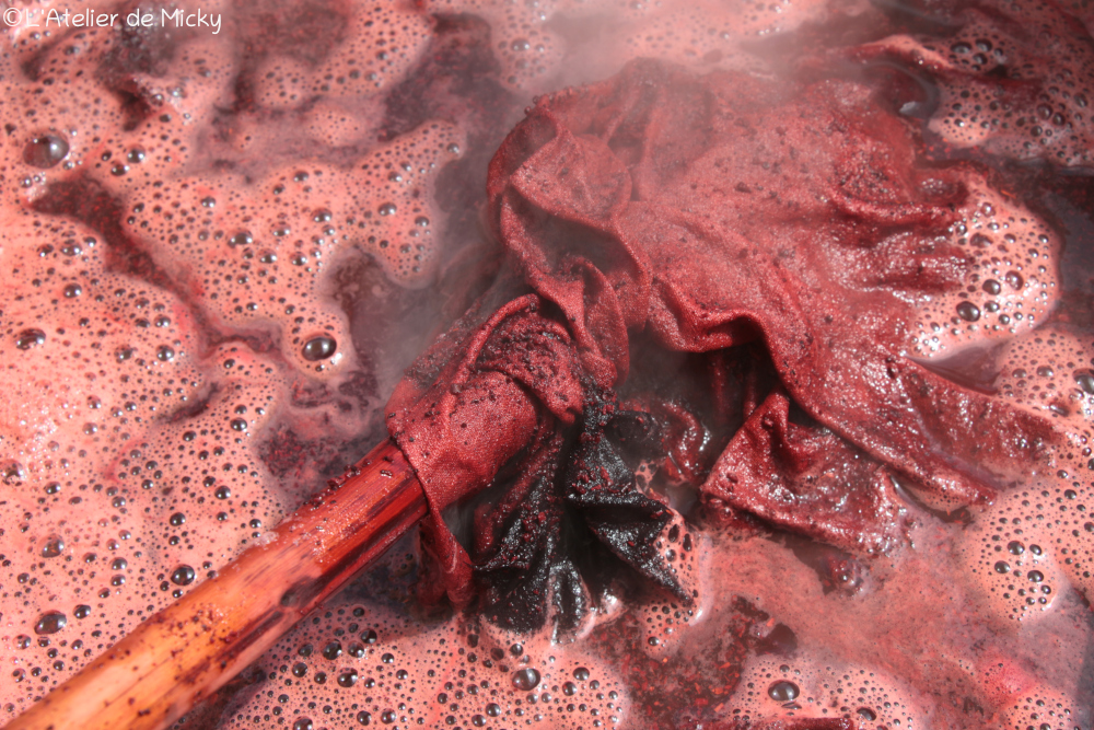 Sur place, j’ai donc utilisé deux mordançages différents. La version moderne est celle au triacétate d’alumine selon la recette de Michel Garcia, qui est très simple à faire, à froid, rapide et pas cher!
